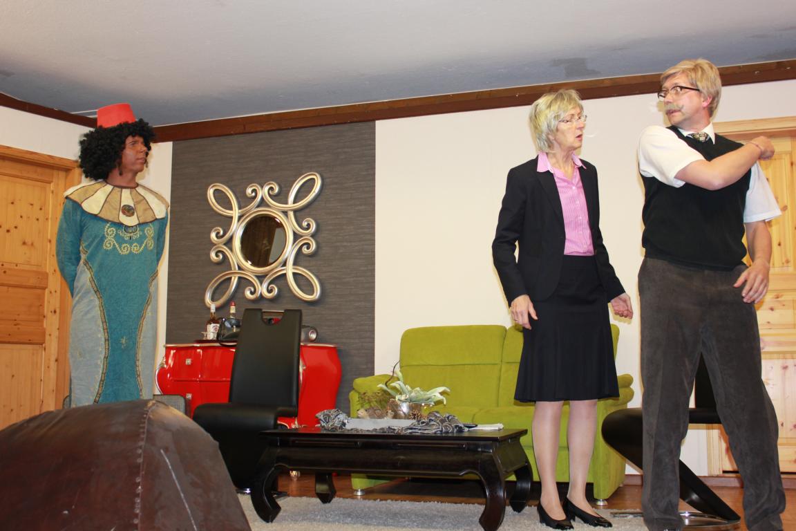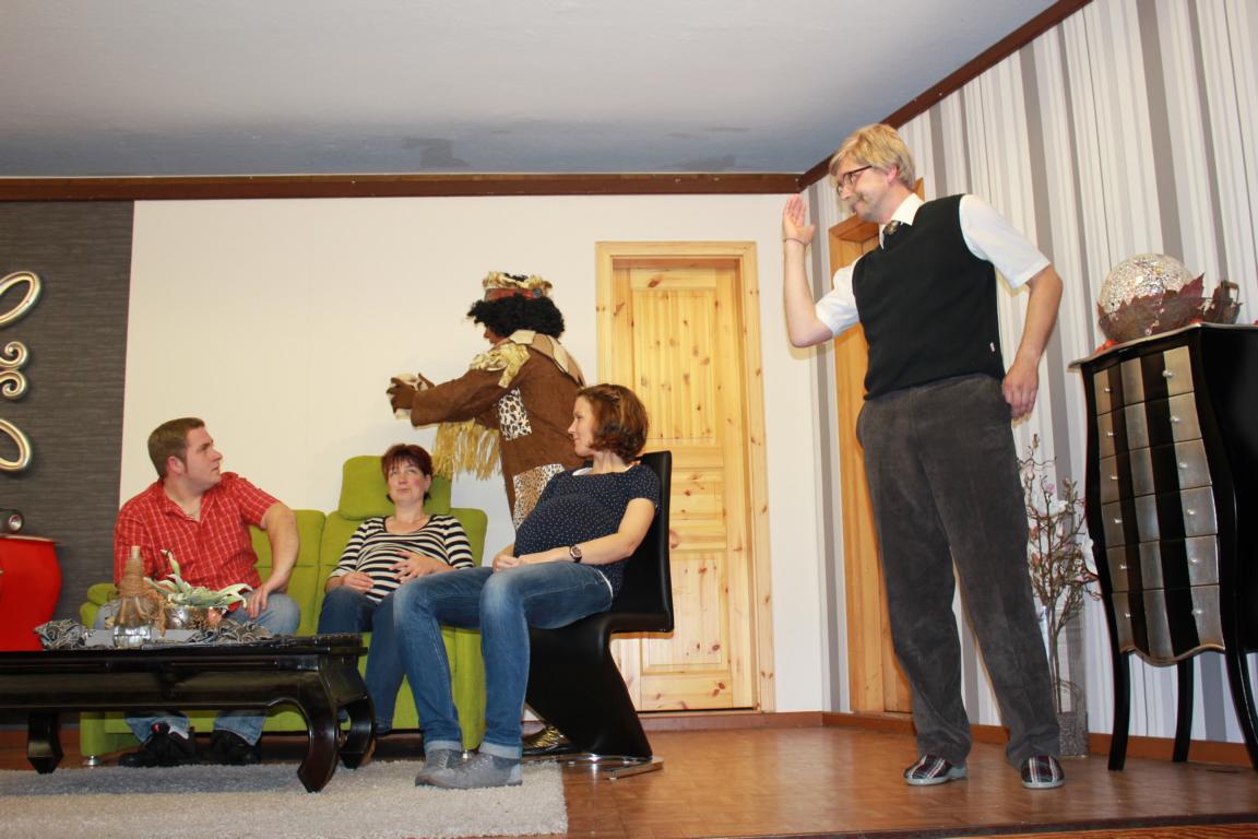 Als Kurt Blaumanns Erbtante Laura aus Afrika zurückkehrt, kommt Kurt in große Schwierigkeiten. Er hat ihr nicht nur für unzählige, erfundene Operationen Geld abgeschwindelt, sondern seine Frau sterben lassen, die beiden Töchter verheiratet und die unmittelbare Geburt deren Töchter angekündigt. Der Versuch, das Geld zu vermehren ist kläglich fehlgeschlagen. Nun gilt es, der Tante eine entsprechende Komödie vorzuspielen. Doch eine wissbegierige Briefträgerin, ein afrikanischer Häuptlingssohn und der Ehemann einer Tochter, der seine männliche Ader noch nicht ganz gefunden hat lassen erahnen, dass diese Komödie viele Turbulenzen beinhaltet.